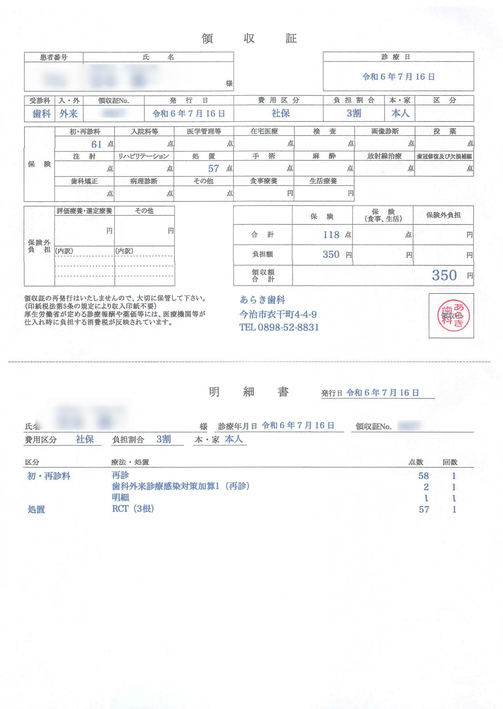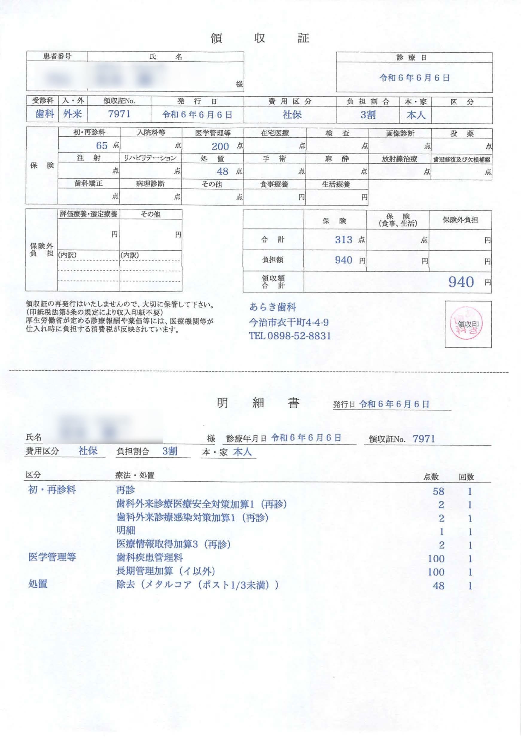 約1時間近く治療してもらったに治療代として940円で大丈夫かって言う位安い