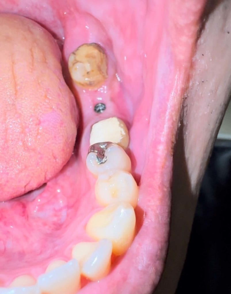 今回何とかインプラントの土台は若干大きめの穴を開ける事で土台のネジを入れる事が出来たが