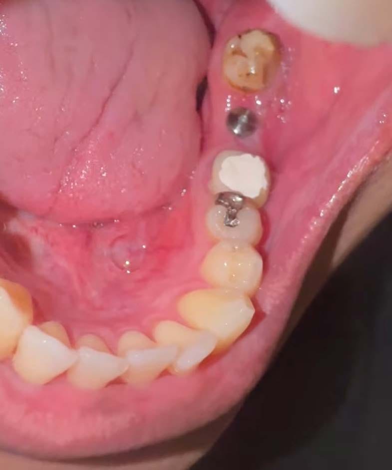 今回の手術ではインプラントのキャップが見える形で終了する方法(手術は1回)であったが