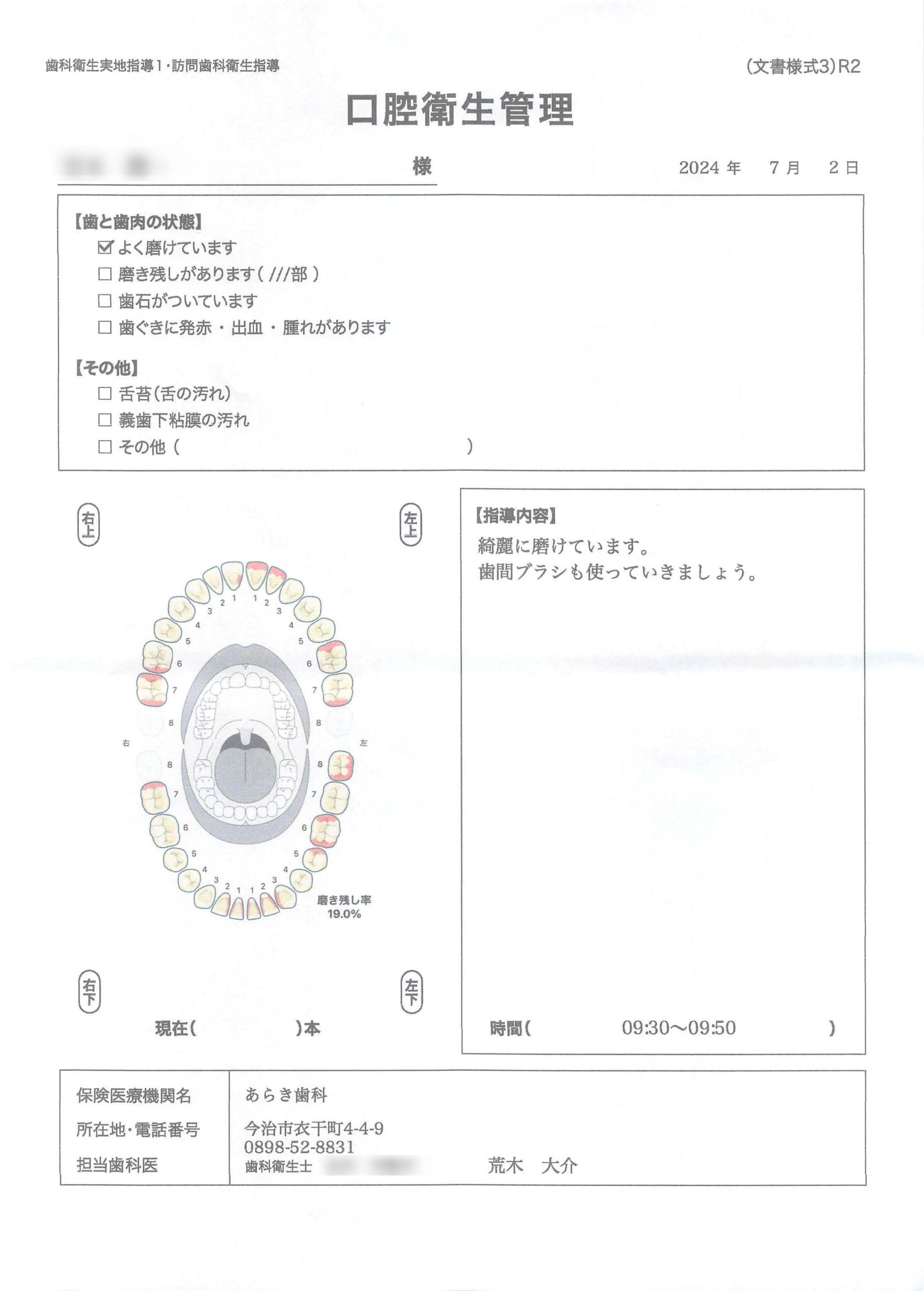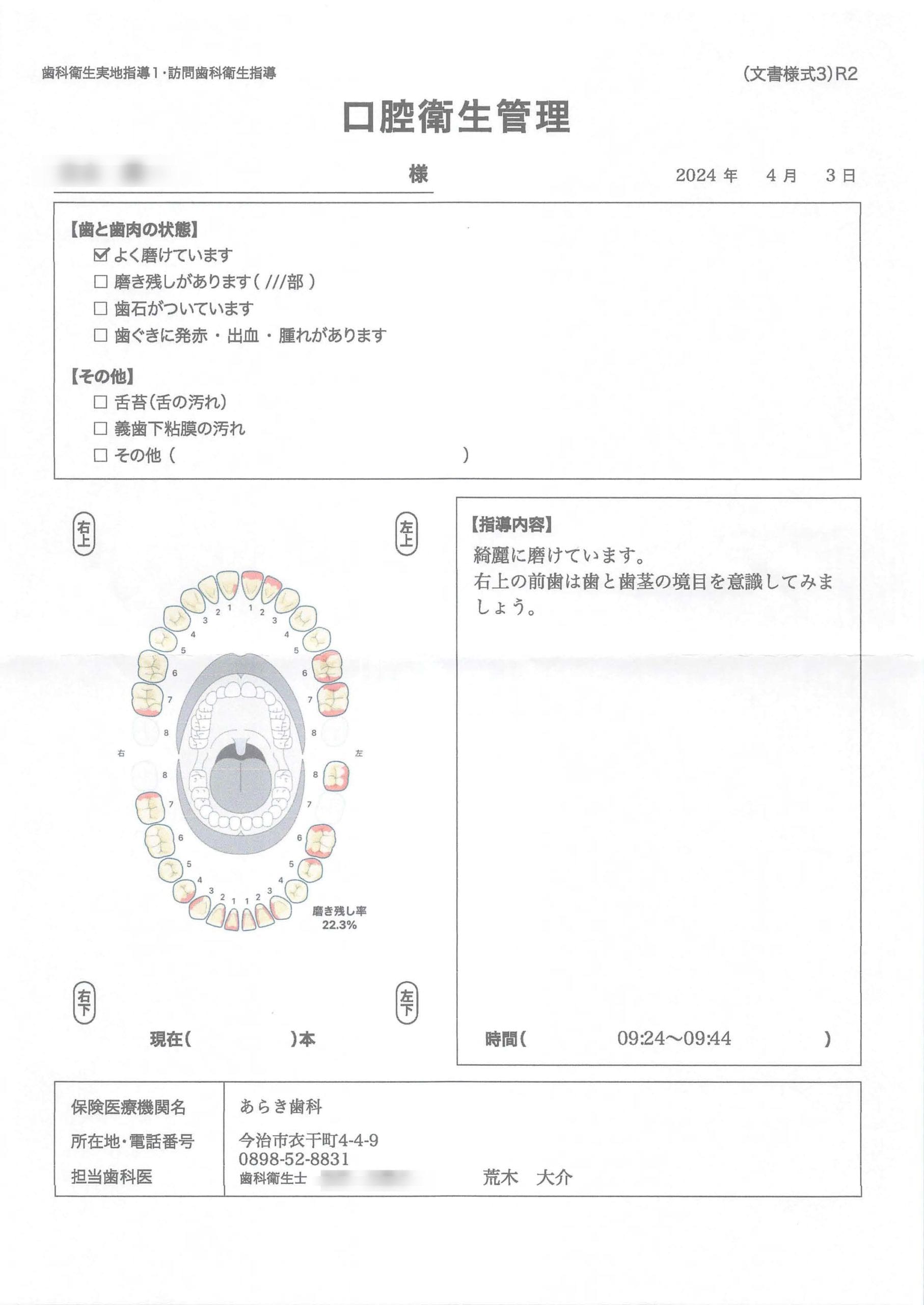 歯の清掃では歯科衛生士さんによく磨けていると褒めていただく