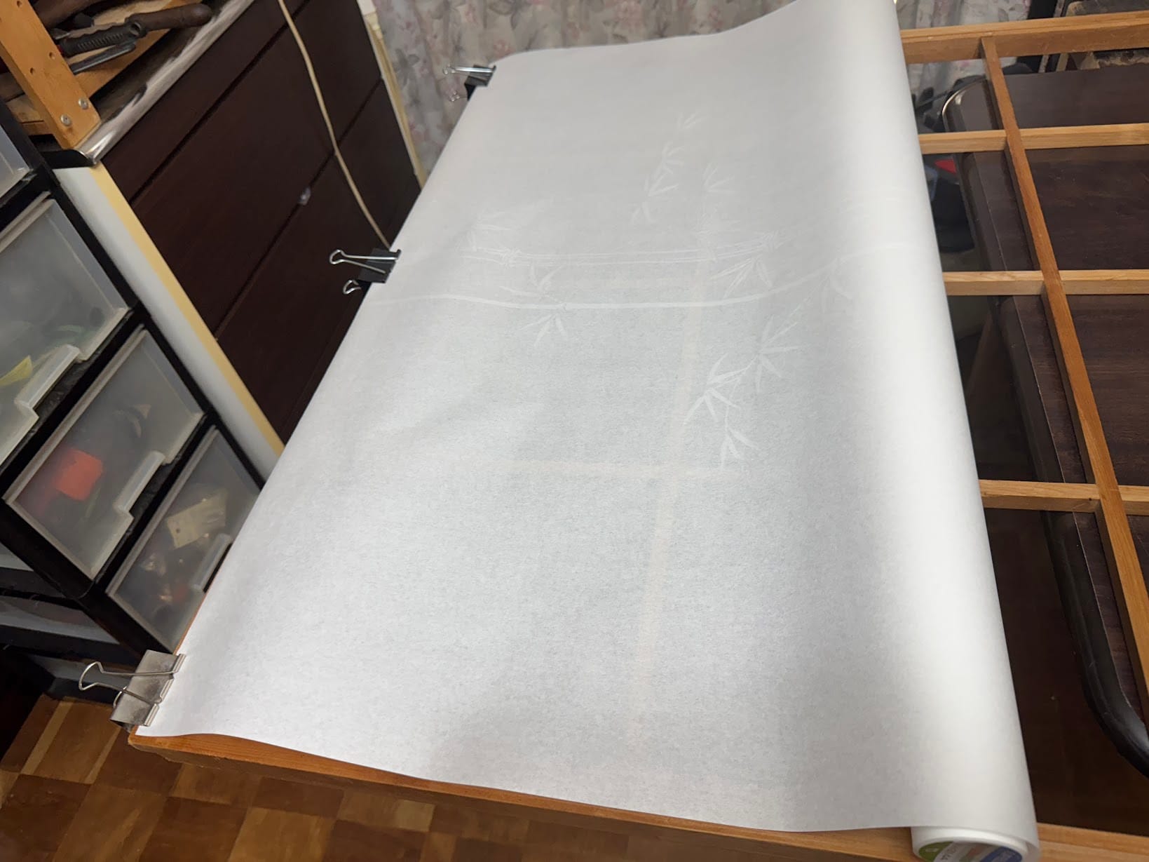 新しい障子紙をカット