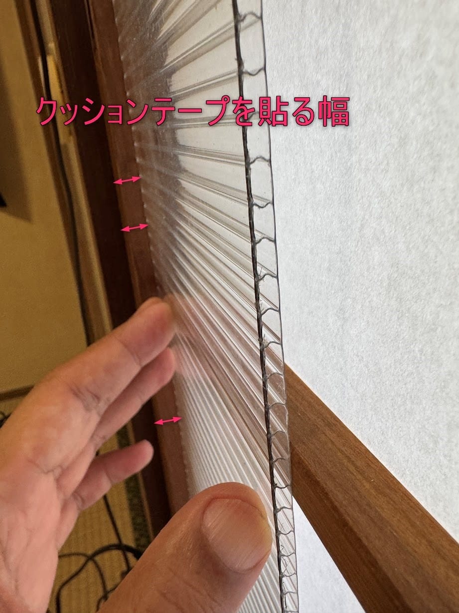 ポリカーボネートの端はクッションテープで固定しようと思っているので