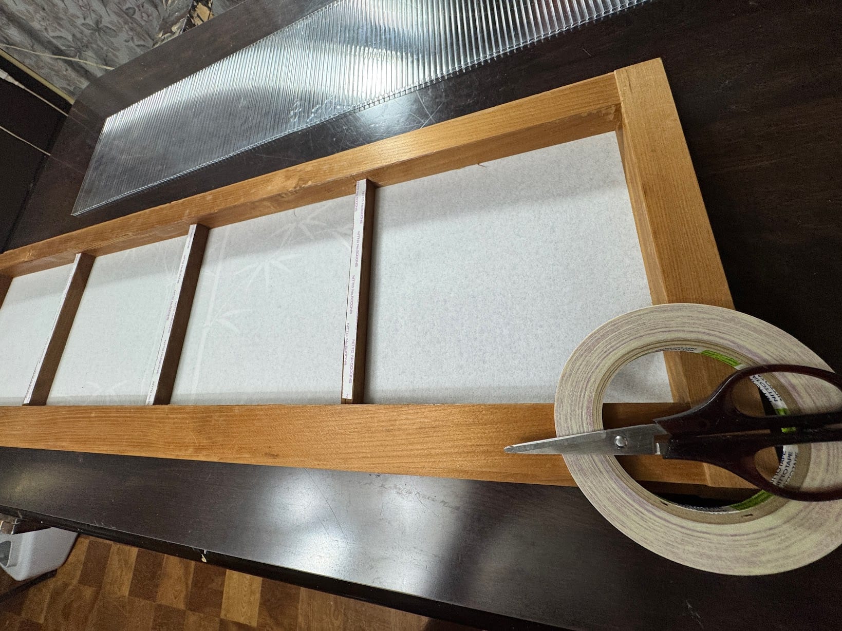 この障子の障子紙のついていない方にポリカーボネートを貼り付けようと思います