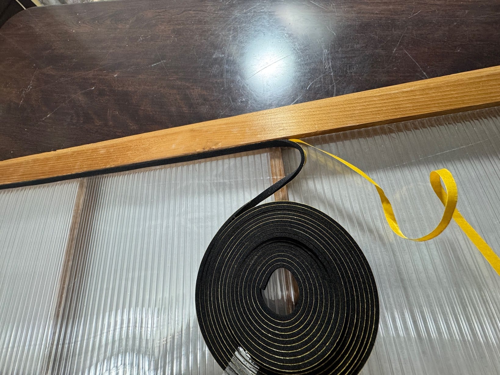 ポリカーボネートと木との間に微妙に隙間があるので