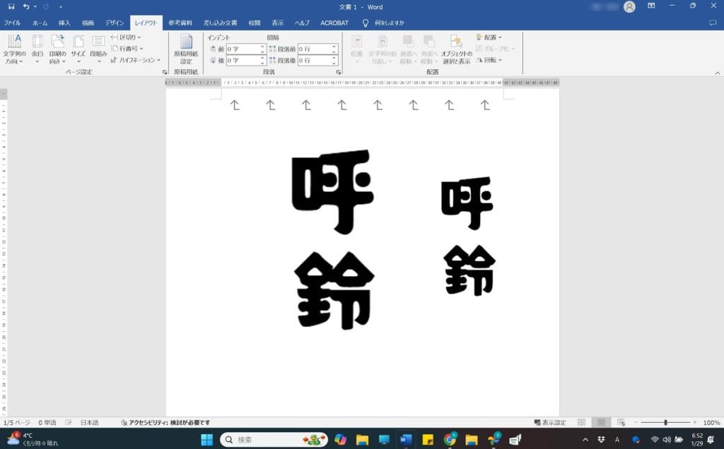 Wordで気に入ったフォントの「呼鈴」を書きます