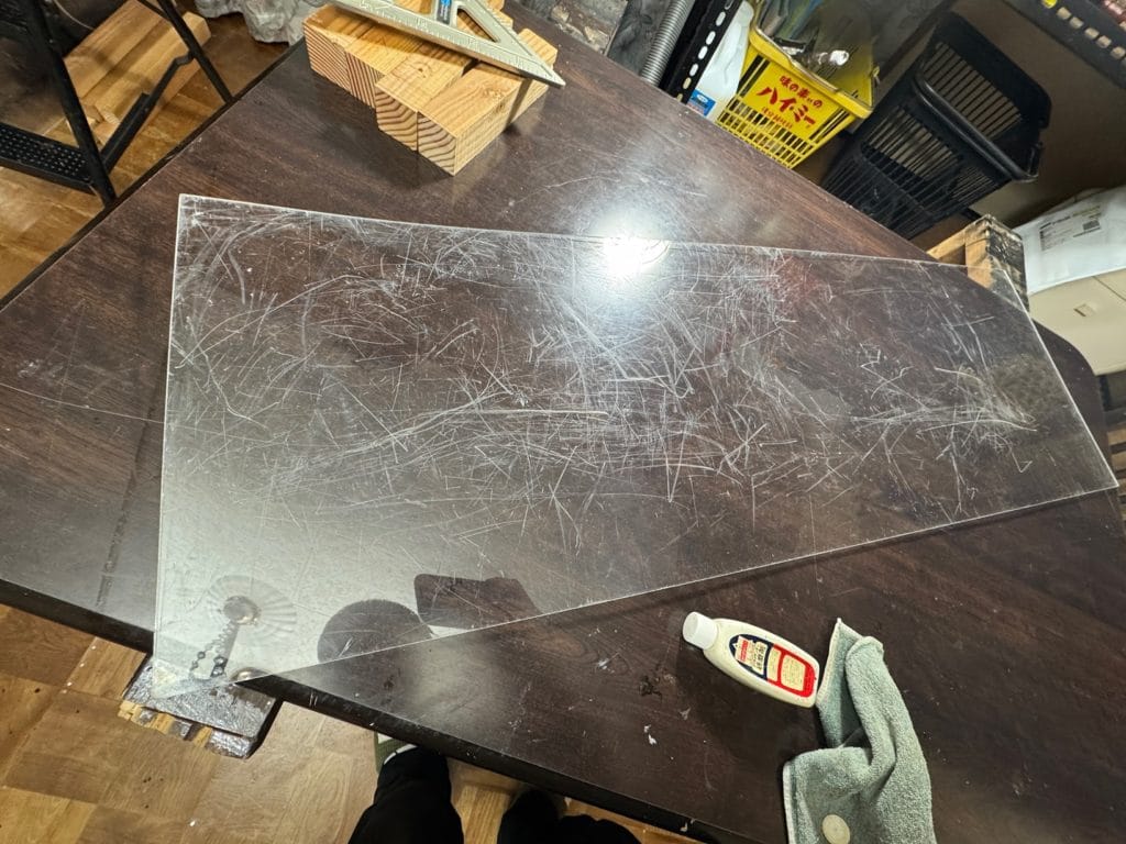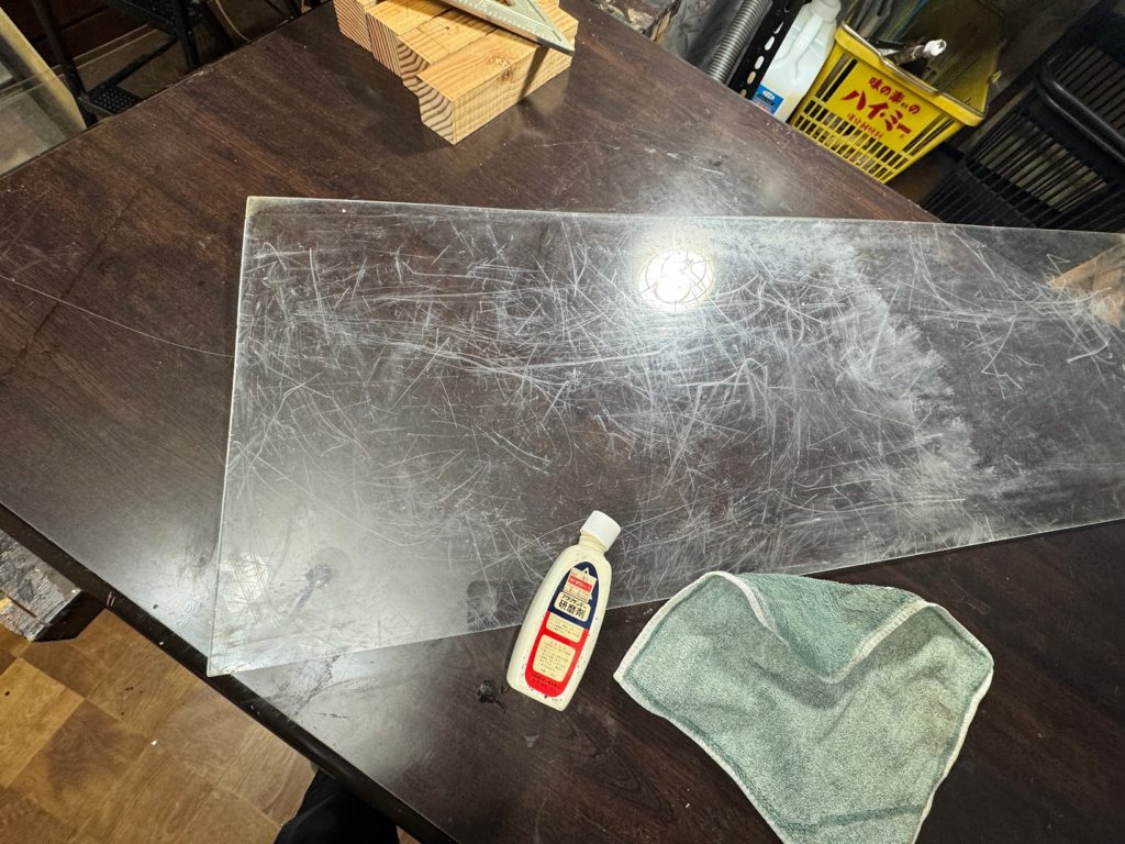 廃材のアクリル板が傷だらけだったので専用の研磨剤でゴシゴシ