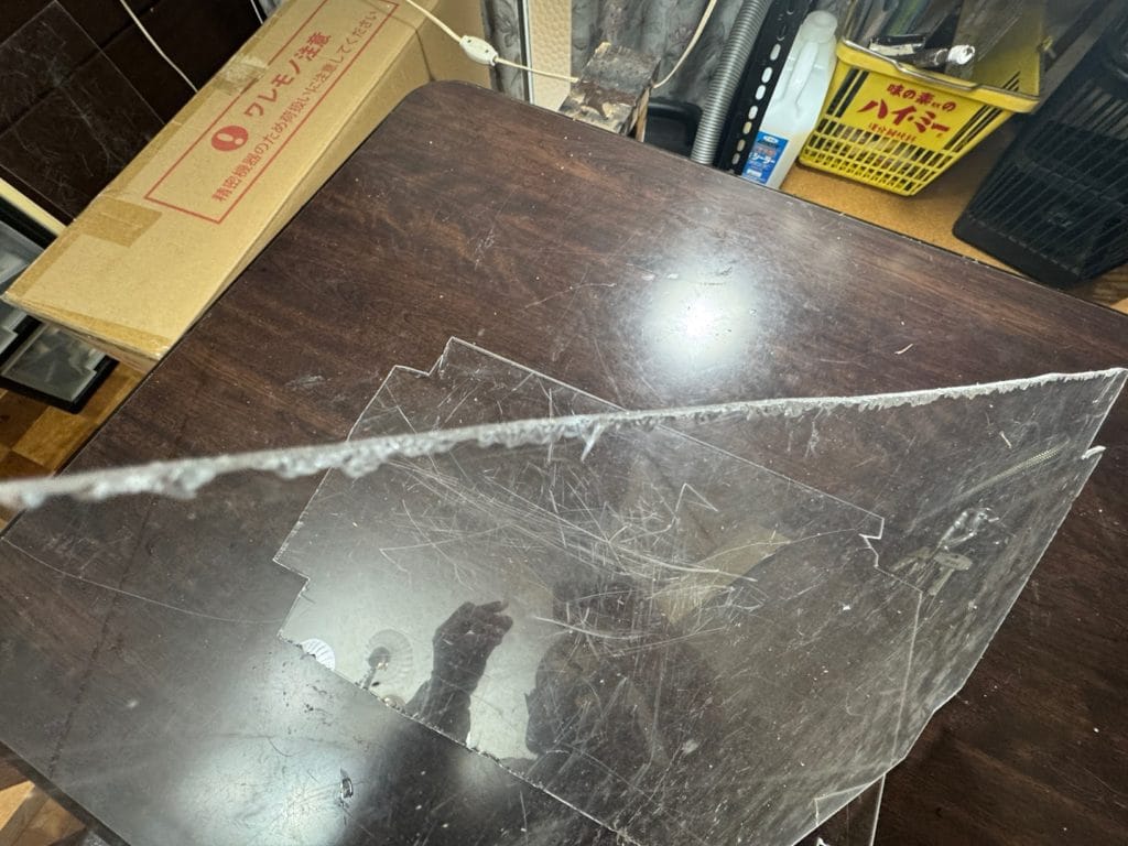 アクリル板を切る時には、カッター用のマットを使うとそのマットもかなり傷つけてしまうので