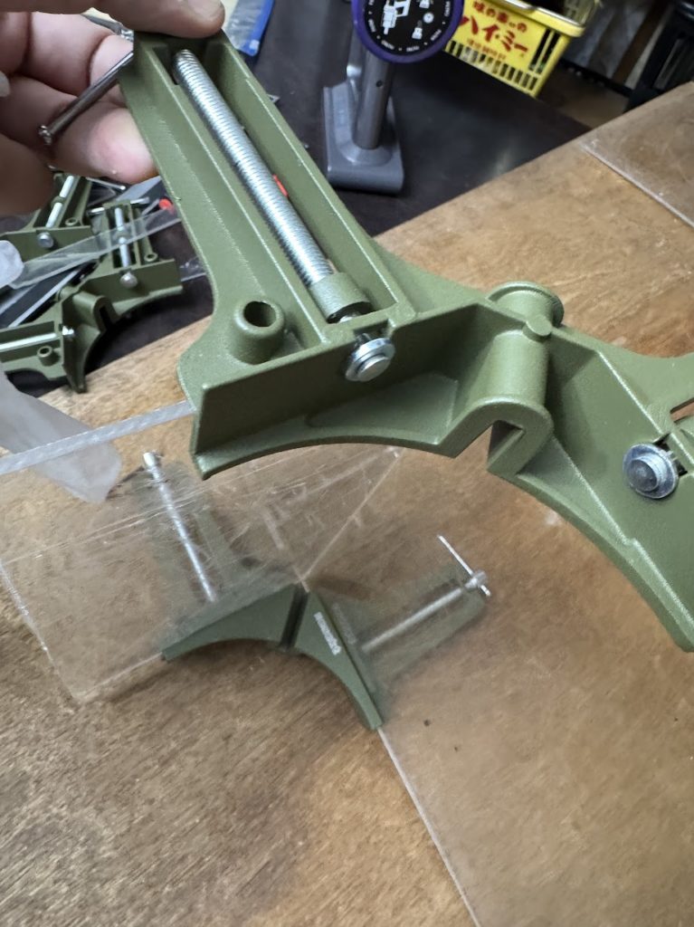 直角を出す治具を使い、専用の接着剤で固定していきます