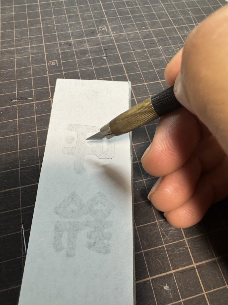 デザインカッターで紙の裏側から文字の部分切り出します