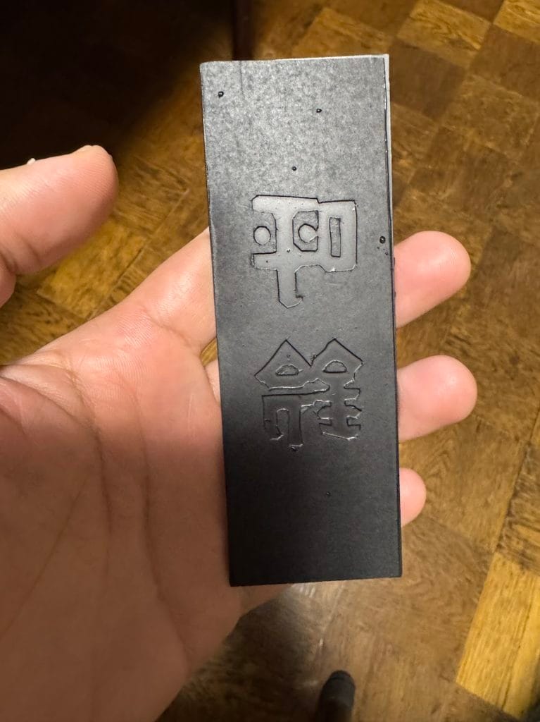 1枚は文字部分を塗装して、もう1枚で挟み塗装部分を保護します
