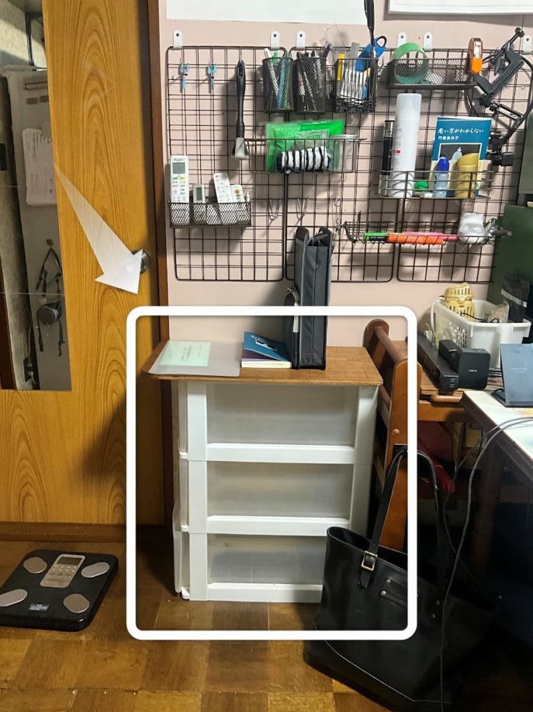 今までドア横にプラスチックのBOXがあったのですが取り回しが悪いため全然使っていない状態でした