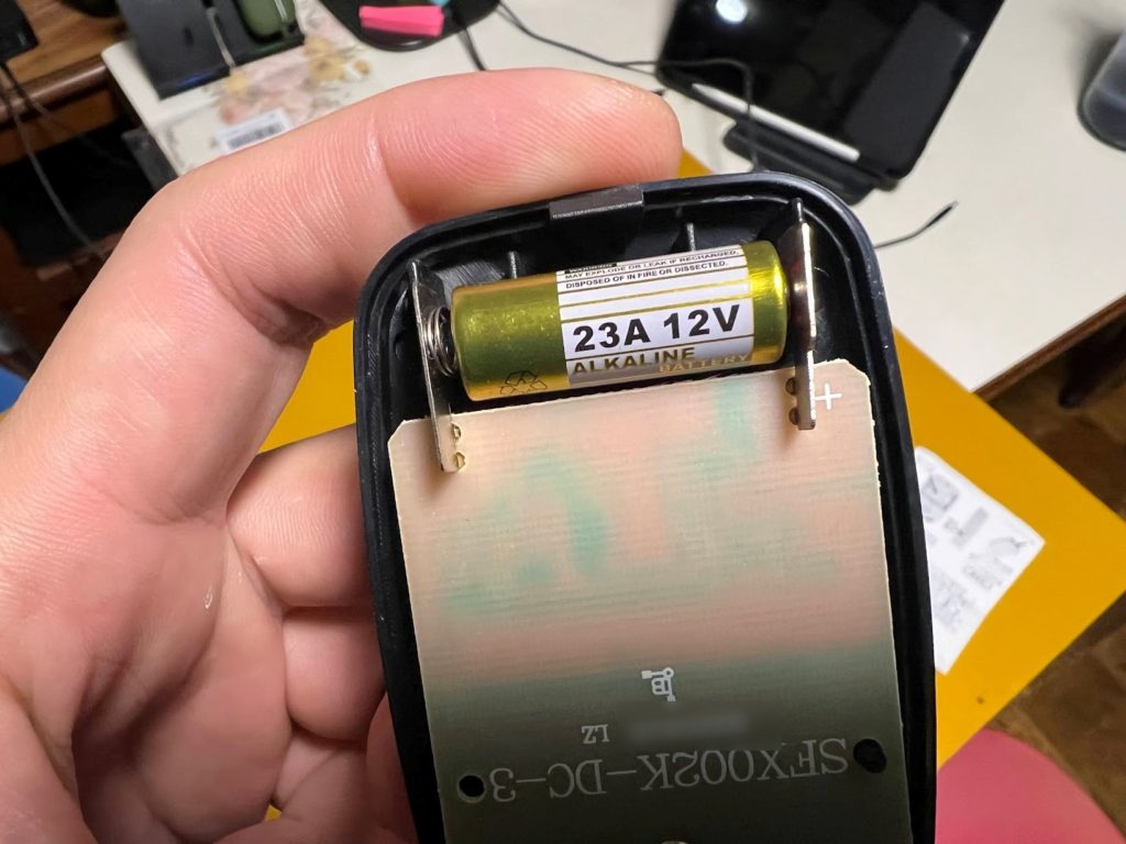 送信機側には23A12Vという一見単5電池と思われるものが入っていました