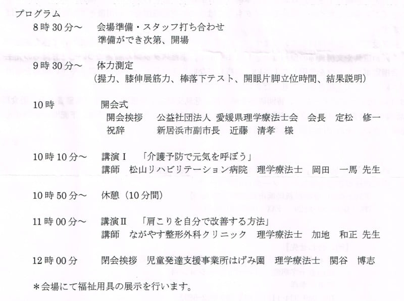県の理学療法士協会が行っている一般の方向けの催しですね。